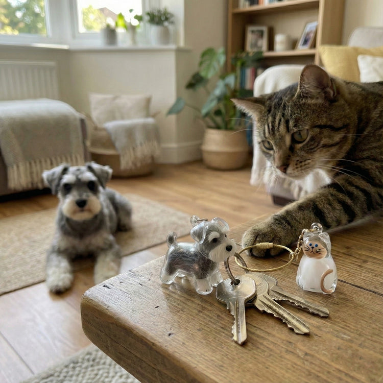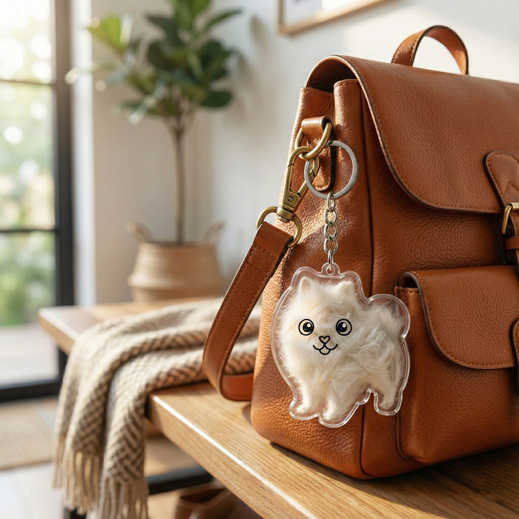See our keychains in real-life moments, from cozy mornings at home to busy days on the go. Each image highlights the clarity, durability, and sentimental value of our dog-shaped keychain shells, crafted to protect and showcase your pet’s fur wherever life takes you.